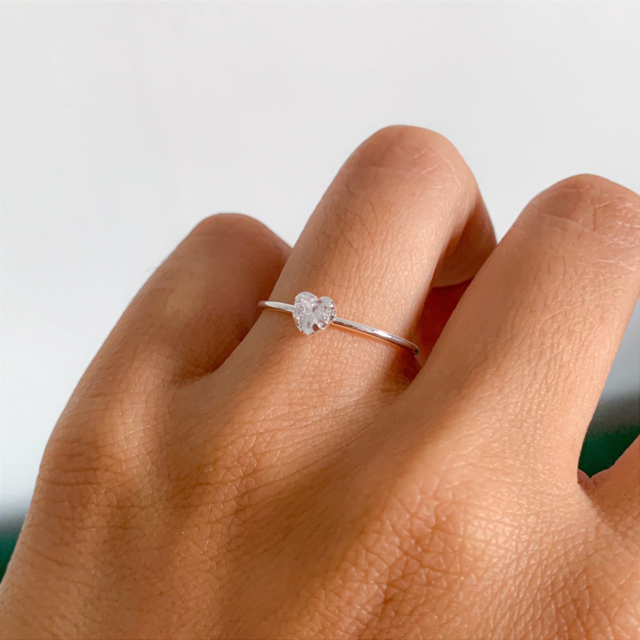 Anel contém 01 pedra formato coração, cor cristal.
