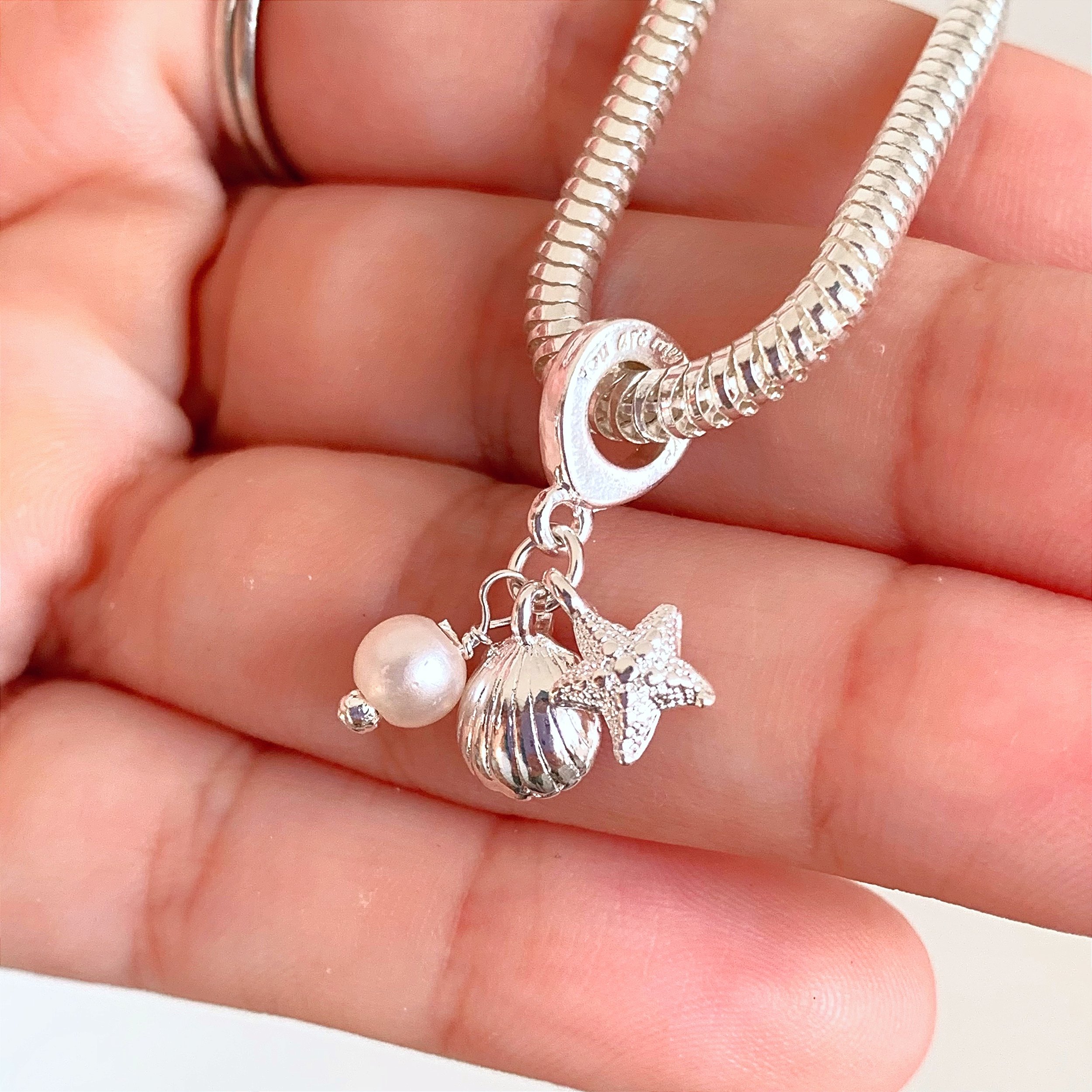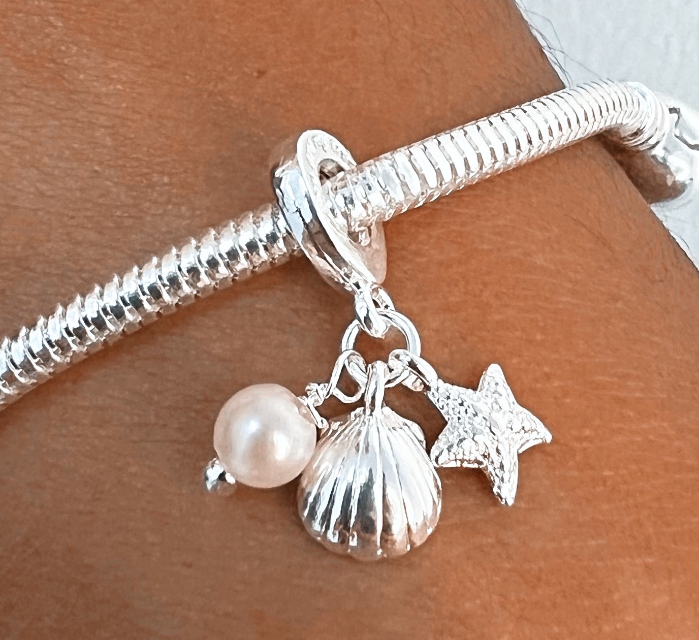 Detalhes: Possui 3 pingentes juntos (concha, pérola, estrela do mar)