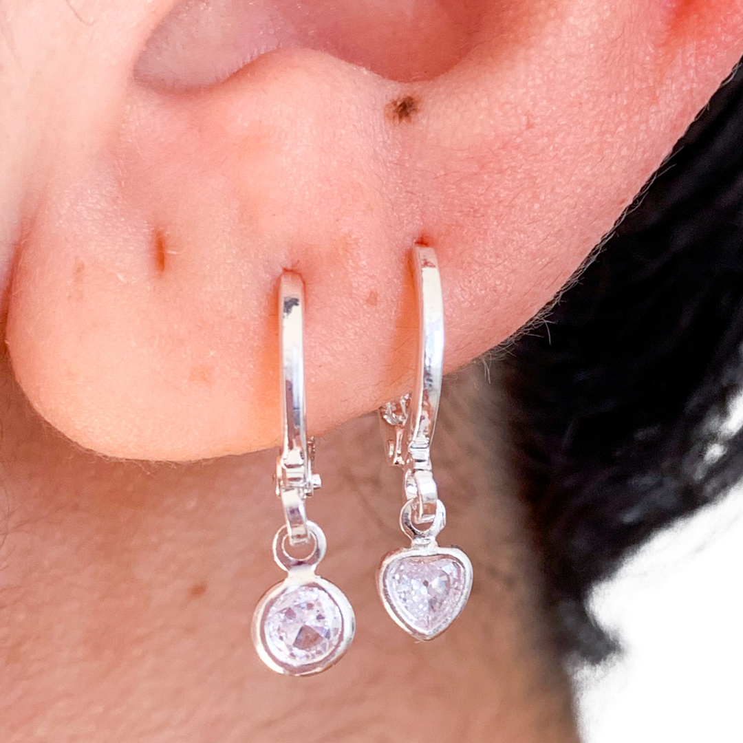 Kit de argolas click pingentes ponto de luz banhado a prata