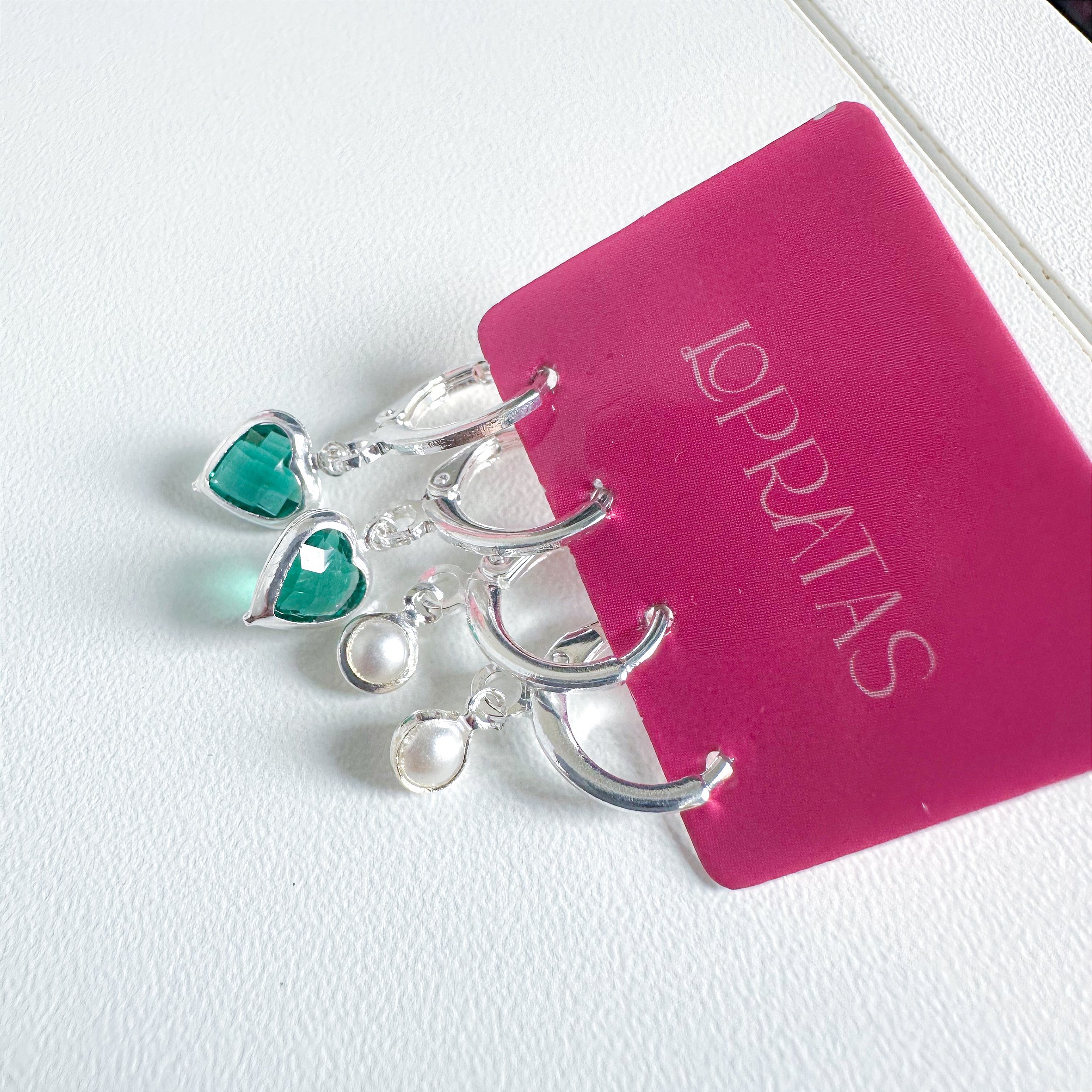01 par argola Argola click coração verde bandeira.